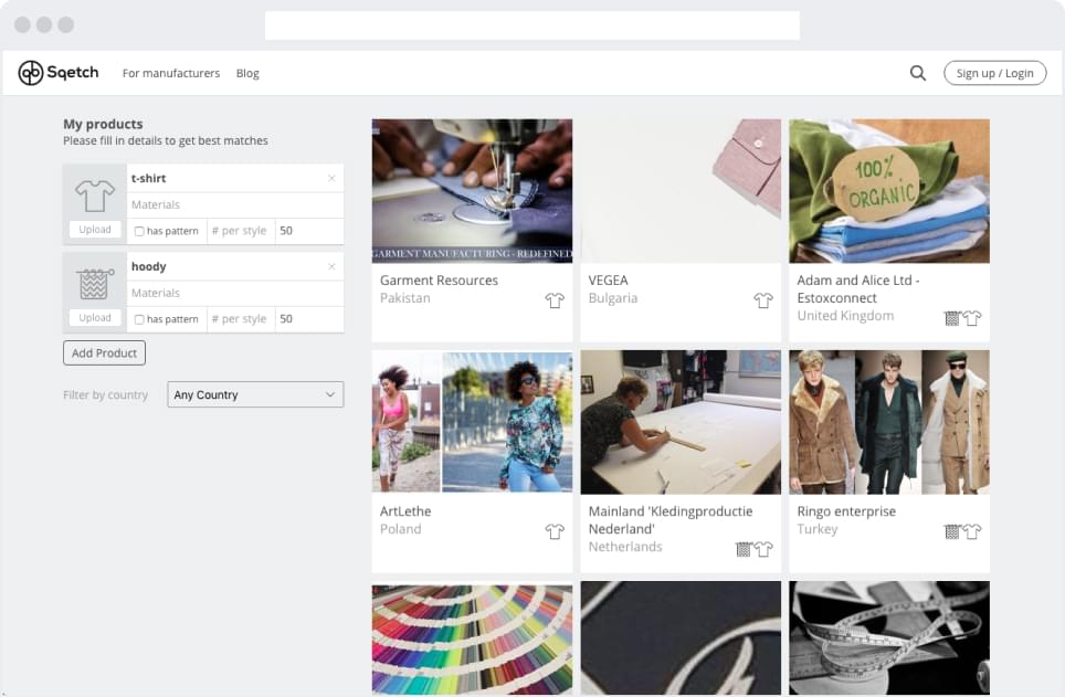Sqetch helps fashion brands to find clothing manufacturers. We helped them to review and implement a new UX flows. We made seamless signup process and project creation flow. Now brand can start talking with a manufacturer almost immediately. Routing user emails through Sqetch system helped to keep them on the platform.